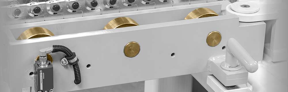 Alle unsere Werkzeugwechselwagen und Werkzeugwechselsysteme können wir nach Erfordernis mit unterschiedlichen Details ausstatten. Für die Übergabe zur Überbrückung von Zwischenräumen kann ein Klappbett, eine Rollkonsole oder eine feste Konsole an der Maschine zum Einsatz kommen. Die Werkzeugführung erfolgt über seitlich angebrachte Führungsschienen, Führungsrollen oder Spurkranzrollen. Die Höhenverstellung erfolgt durch einen Spindelantrieb, Hydraulikzylinder oder Scherenhubtisch. Der Werkzeugeinschub kann manuell, angetrieben mittels Spindel,- Schubkette bzw. Teleskopeinschub realisiert werden. Die Positionen zur Maschine in Raum und Höhe können mechanisch durch Führungsschienen mit Abstecker oder elektrisch über optische Laserpunkte angefahren werden. Sicherheitsvorrichtung wie Auffahrstoßleisten oder Lichtschranken gehören zu unserer Ausstattung.